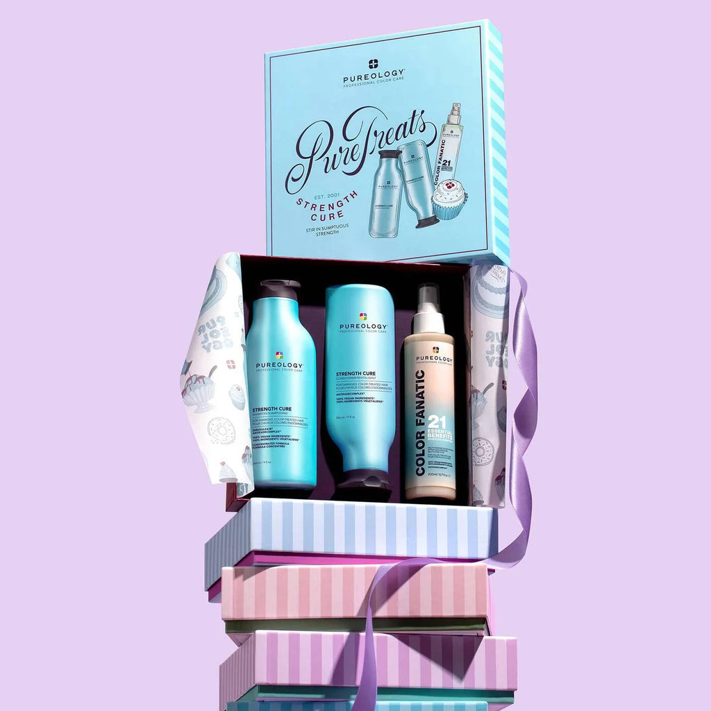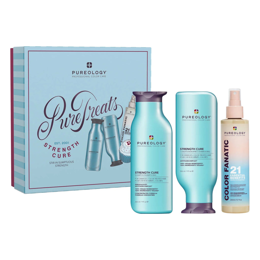 Stir in sumptious strength. A deliciously nourishing gift for any occasion, this holiday haircare set features a strengthening sulfate-free shampoo and silicone-free conditioner to repair damaged strands and help prevent future damage. The multi-benefit leave-in conditioner spray preps for styling while providing heat protection, hydrating, and detangling.